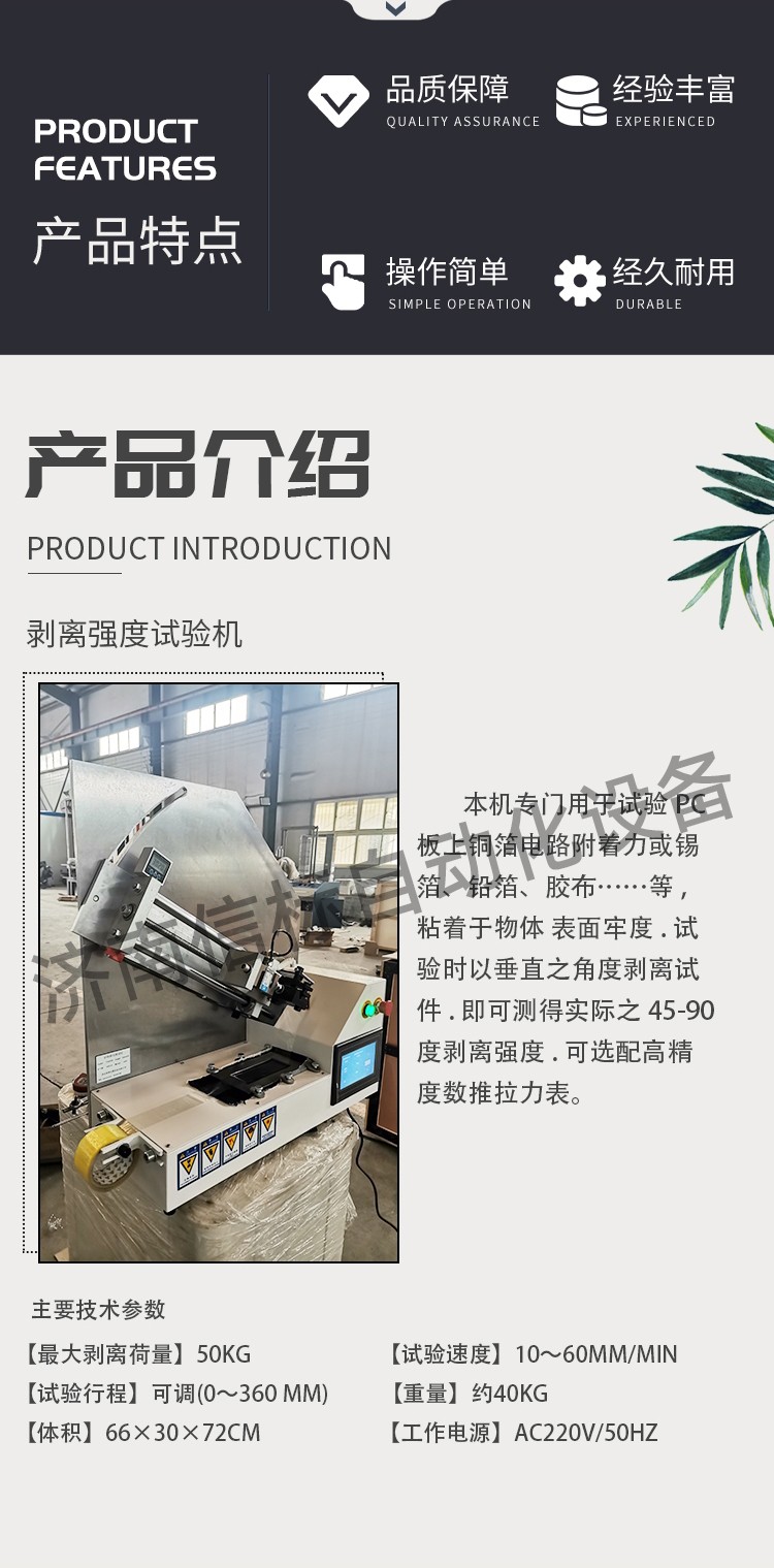 試用范圍:本機(jī)專門用于試驗(yàn)PC板上銅箔電路附著力或錫箔、鉛箔、膠布……等,粘著于物體 表面牢度.試驗(yàn)時(shí)以垂直之角度剝離試件.即可測得實(shí)際之45-90度剝離強(qiáng)度.可選配高精度數(shù)推拉力表。